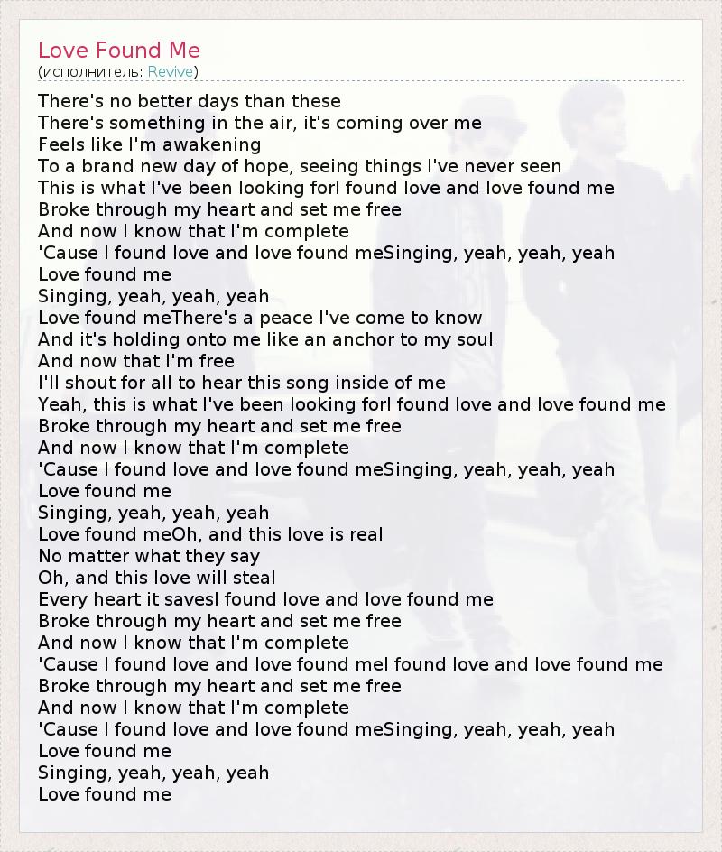 А как ты думаешь, о чем песня "Love Found Me" ?