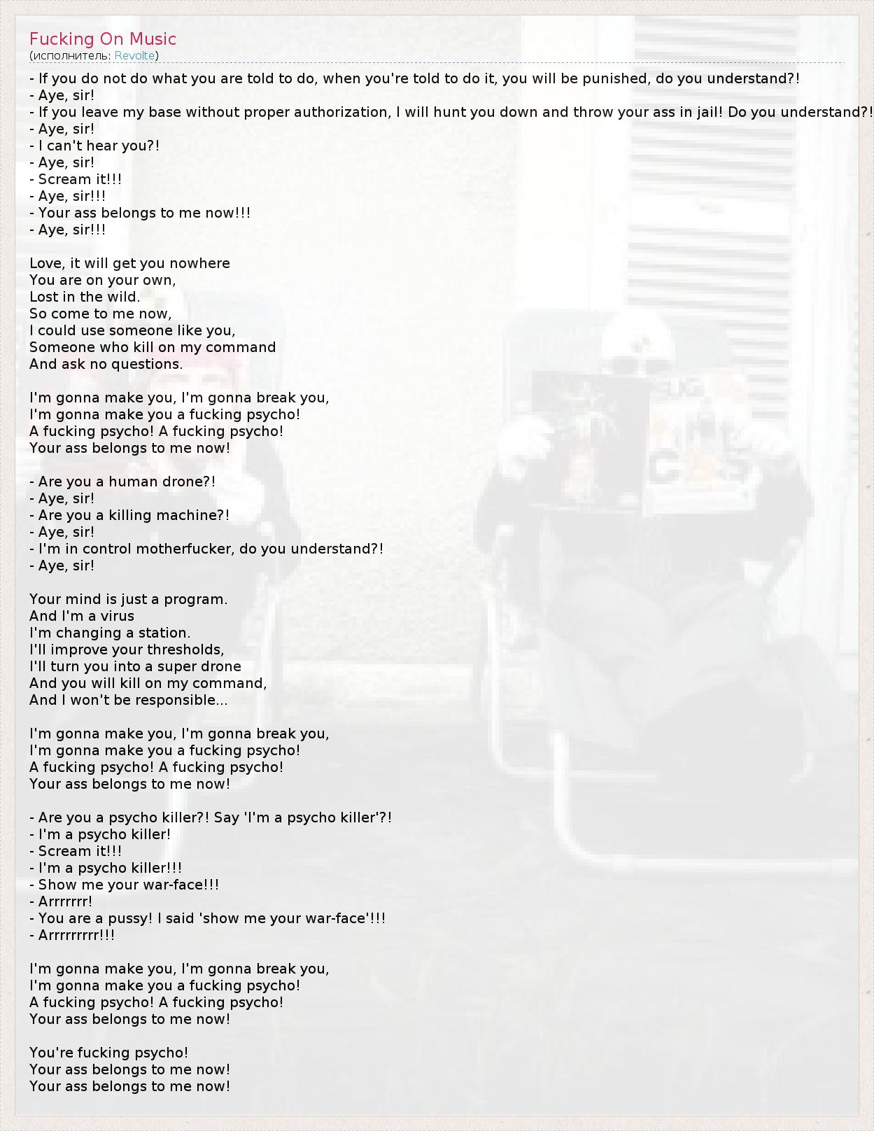 А как ты думаешь, о чем песня "Fucking On Music" ?