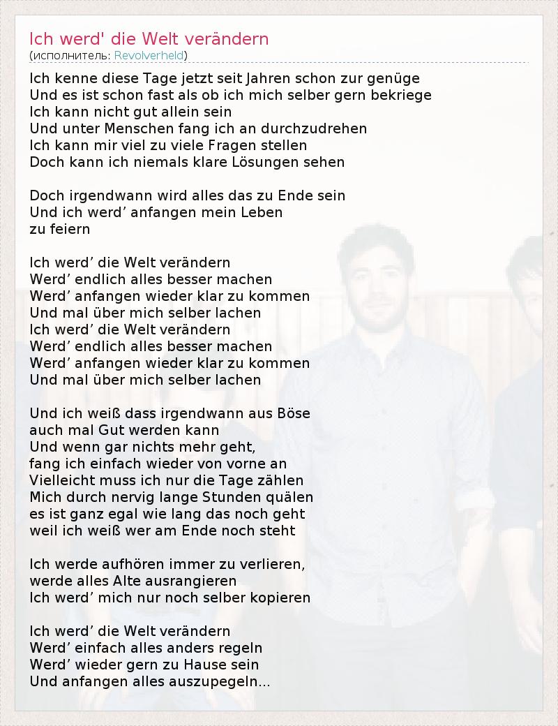 А как ты думаешь, о чем песня "Ich werd' die Welt verändern" ?