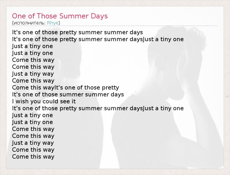 А как ты думаешь, о чем песня "One of Those Summer Days" ?