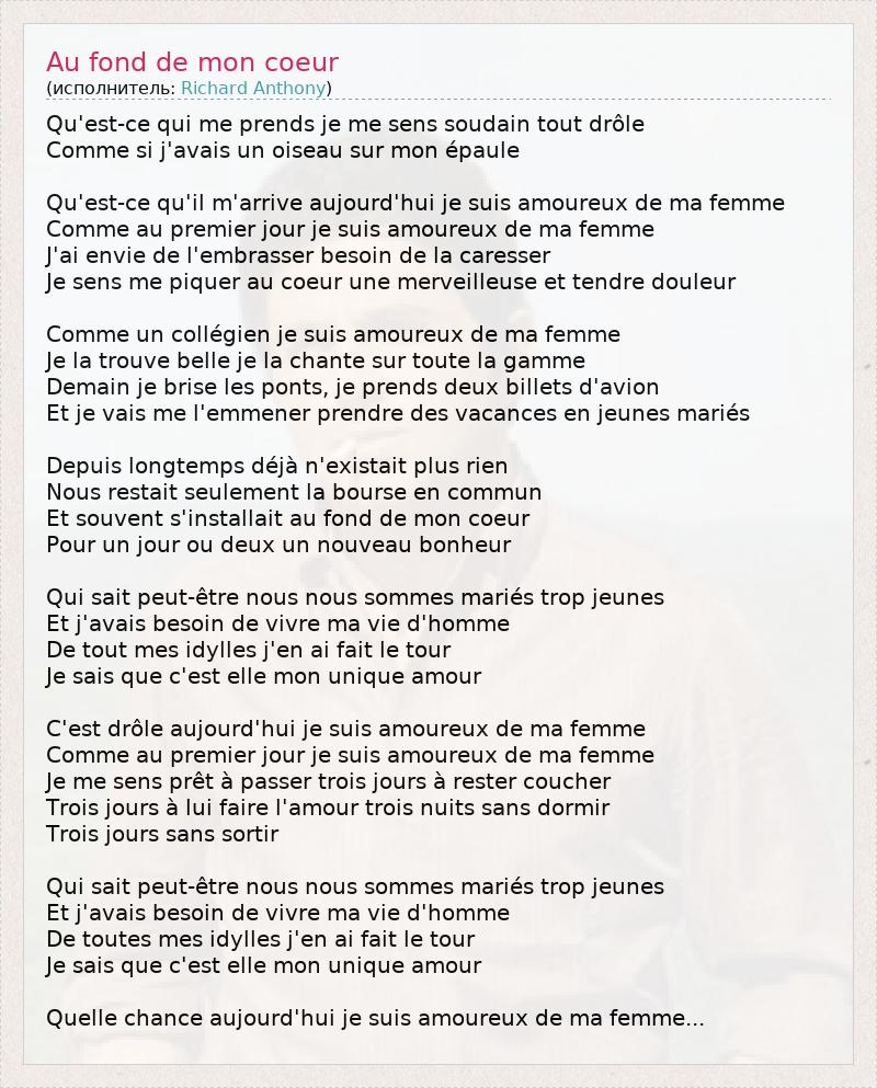 А как ты думаешь, о чем песня "Au fond de mon coeur" ?