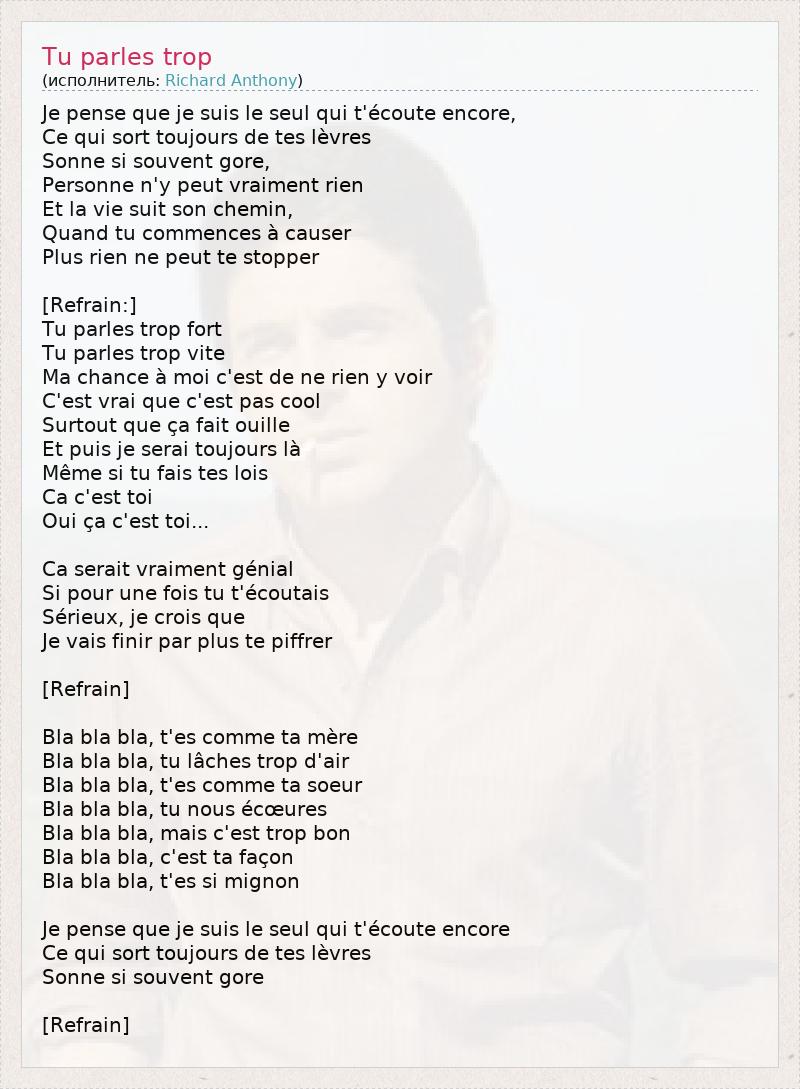 А как ты думаешь, о чем песня "Tu parles trop" ?