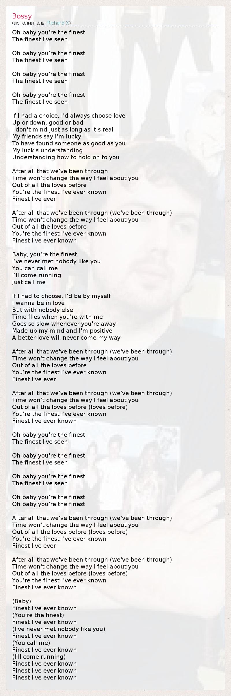 You're the finest I've ever known