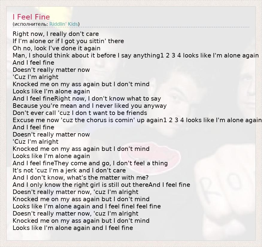 And I feel fine