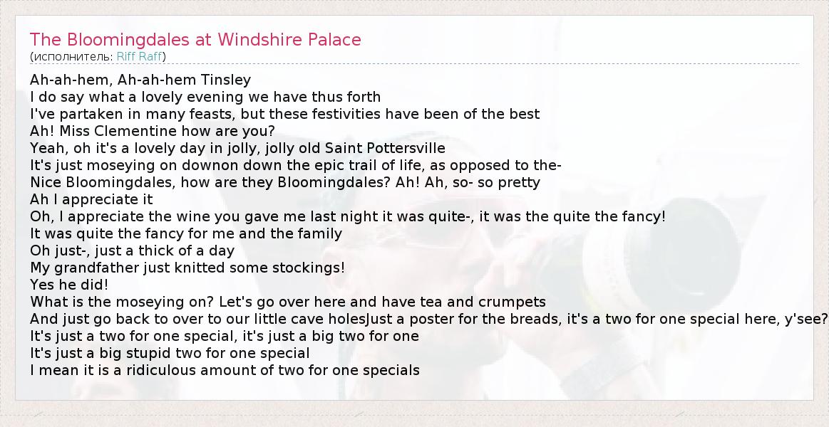 А как ты думаешь, о чем песня "The Bloomingdales at Windshire Palace" ?