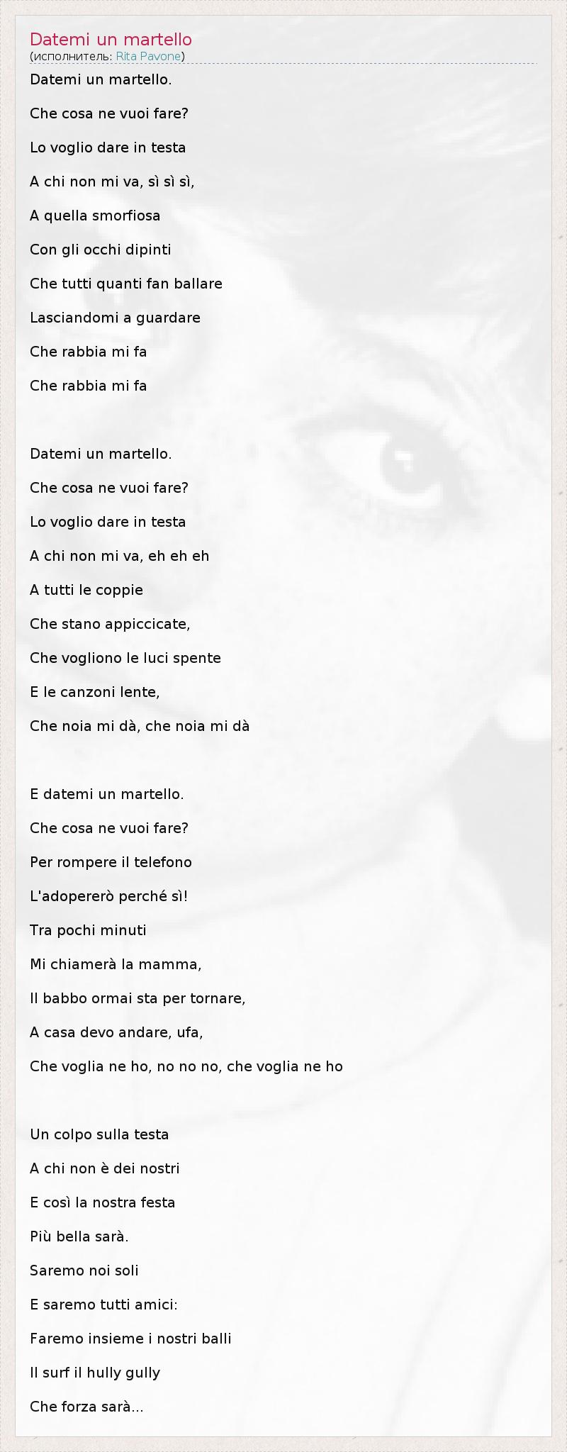 А как ты думаешь, о чем песня "Datemi un martello" ?