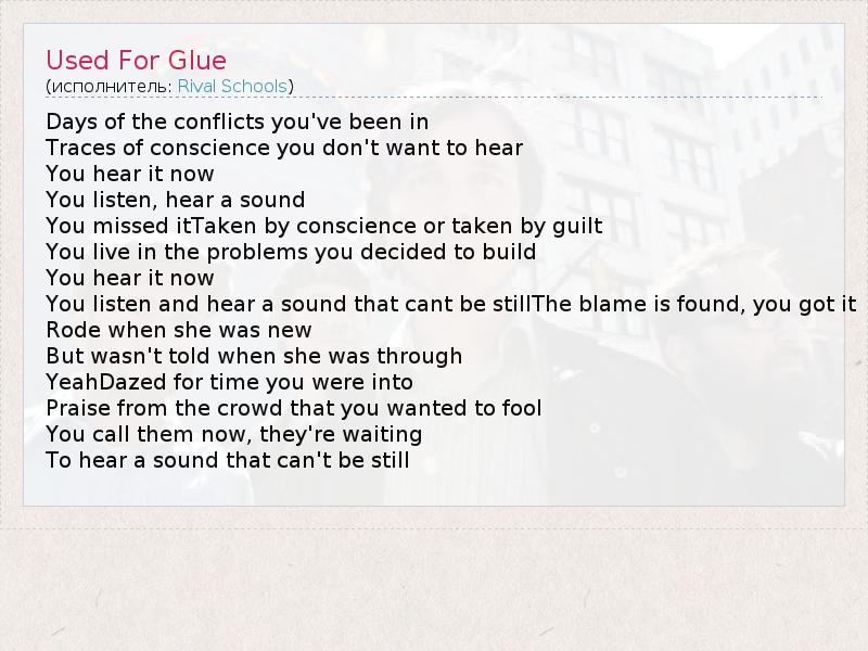 А как ты думаешь, о чем песня "Used For Glue" ?