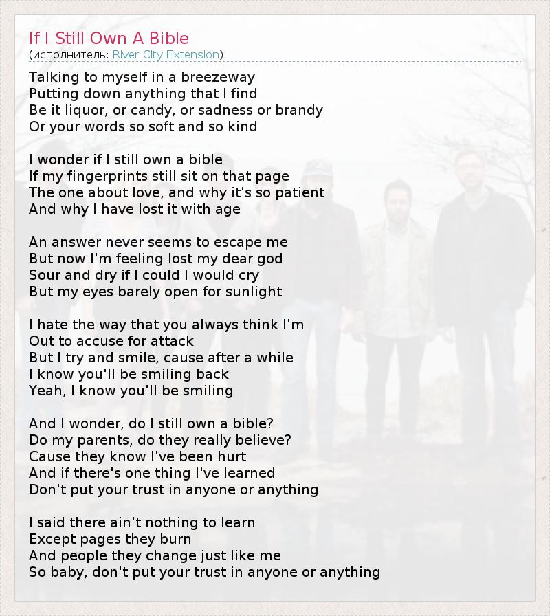 А как ты думаешь, о чем песня "If I Still Own A Bible" ?