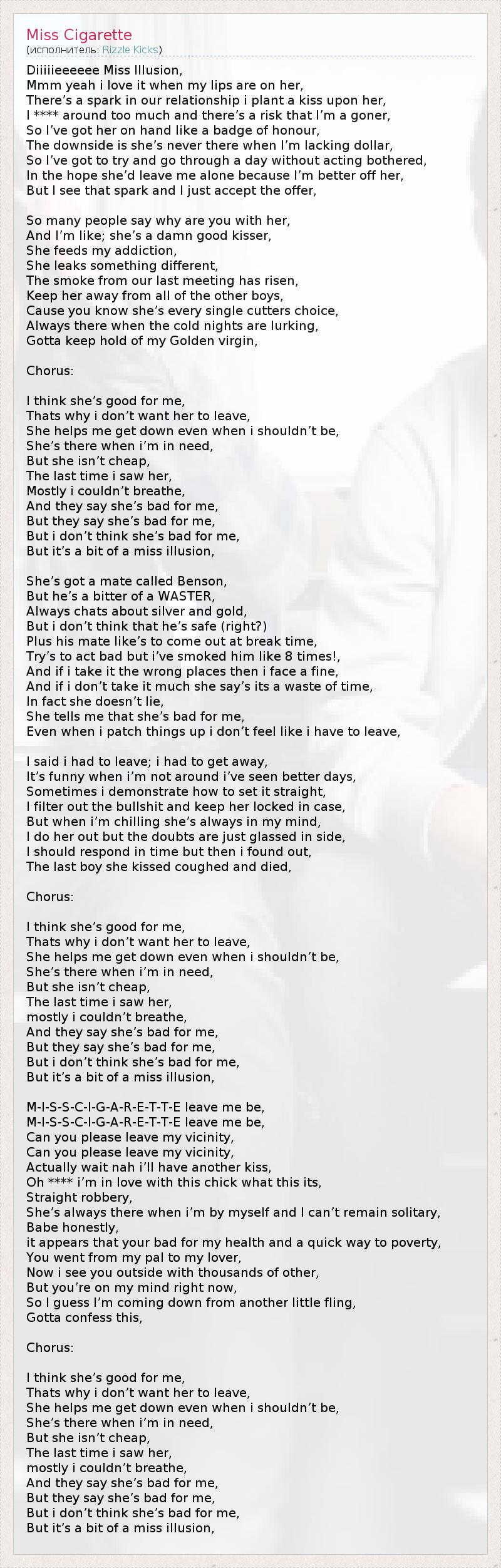 А как ты думаешь, о чем песня "Miss Cigarette" ?