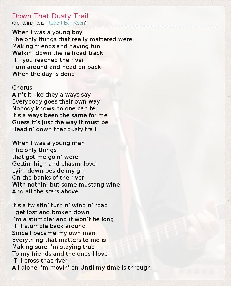 А как ты думаешь, о чем песня "Down That Dusty Trail" ?