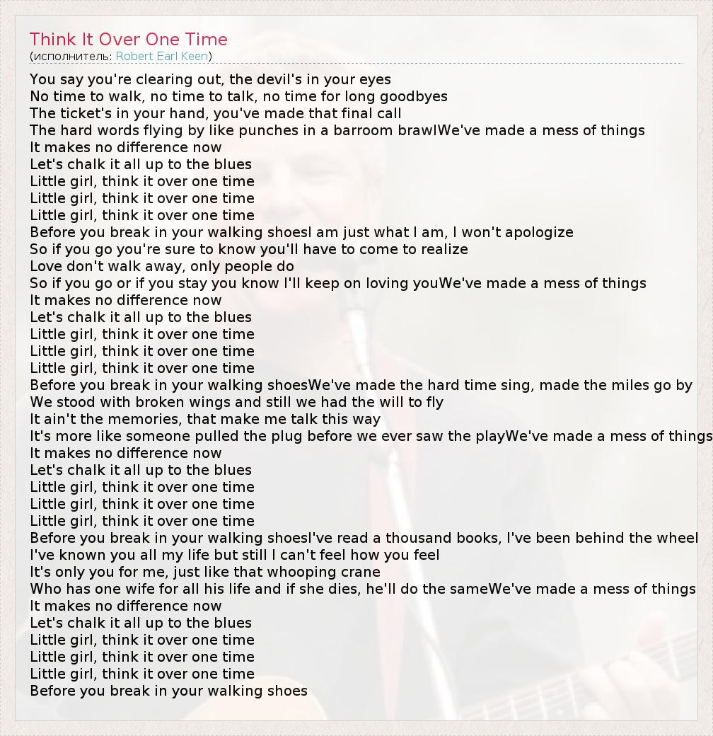 А как ты думаешь, о чем песня "Think It Over One Time" ?