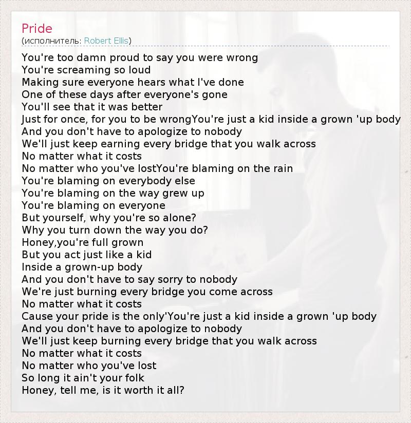 Cause your pride is the only'You're just a kid inside a grown 'up body
