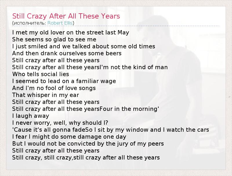 А как ты думаешь, о чем песня "Still Crazy After All These Years" ?