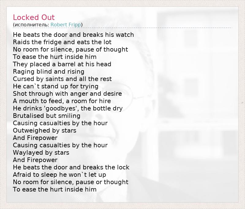 Это интересно:Роберт Фрипп (англ. Robert Fripp; р. 16 мая 1946, Уимборн Минстер, Англия) — британский рок-музыкант, гитарист, композитор, музыкальный деятель, педагог. Один из основателей и постоянный участник рок-группы «King Crimson», автор оригинального гитарного строя и техники игры плектром на гитаре. Его творчество, обнимающее три с лишним десятка лет, относится к различным музыкальным стилям и жанрам. Женат... продолжение
