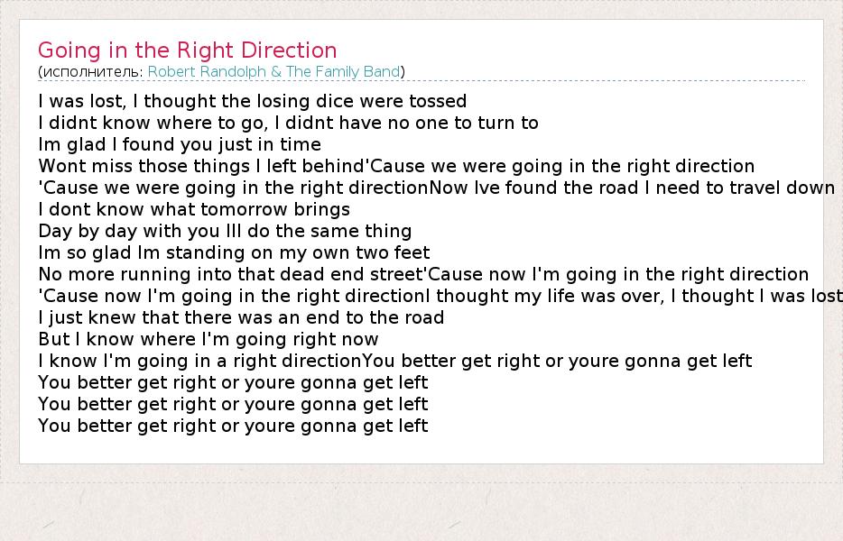 А как ты думаешь, о чем песня "Going in the Right Direction" ?
