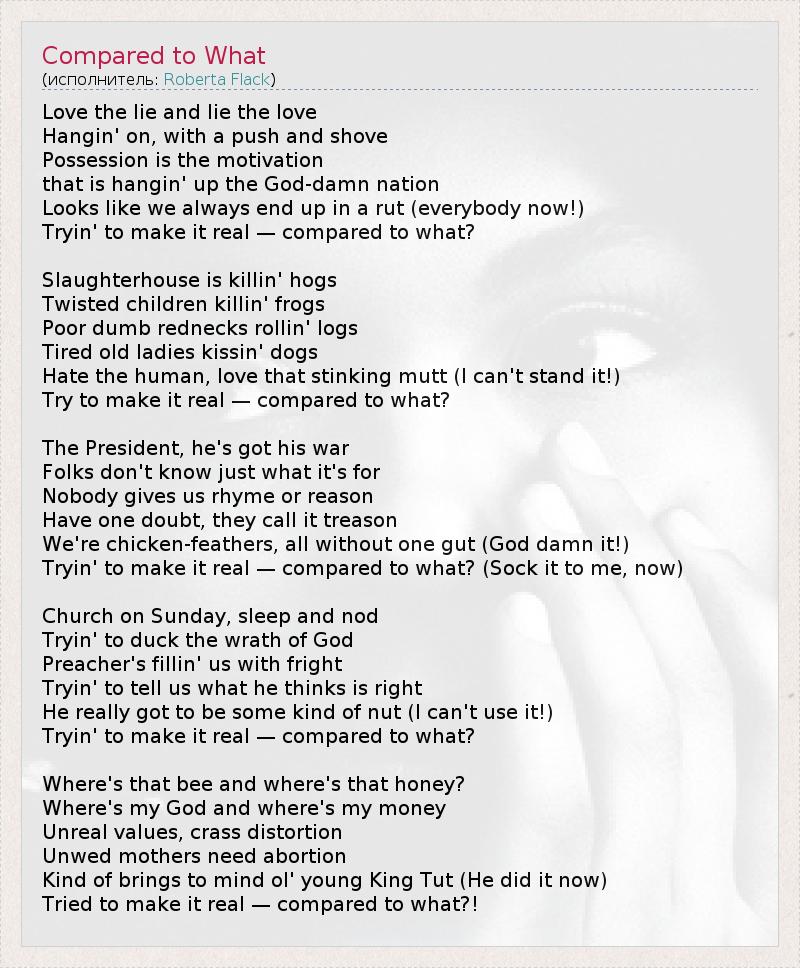 Tryin' to make it real — compared to what? (Sock it to me, now)