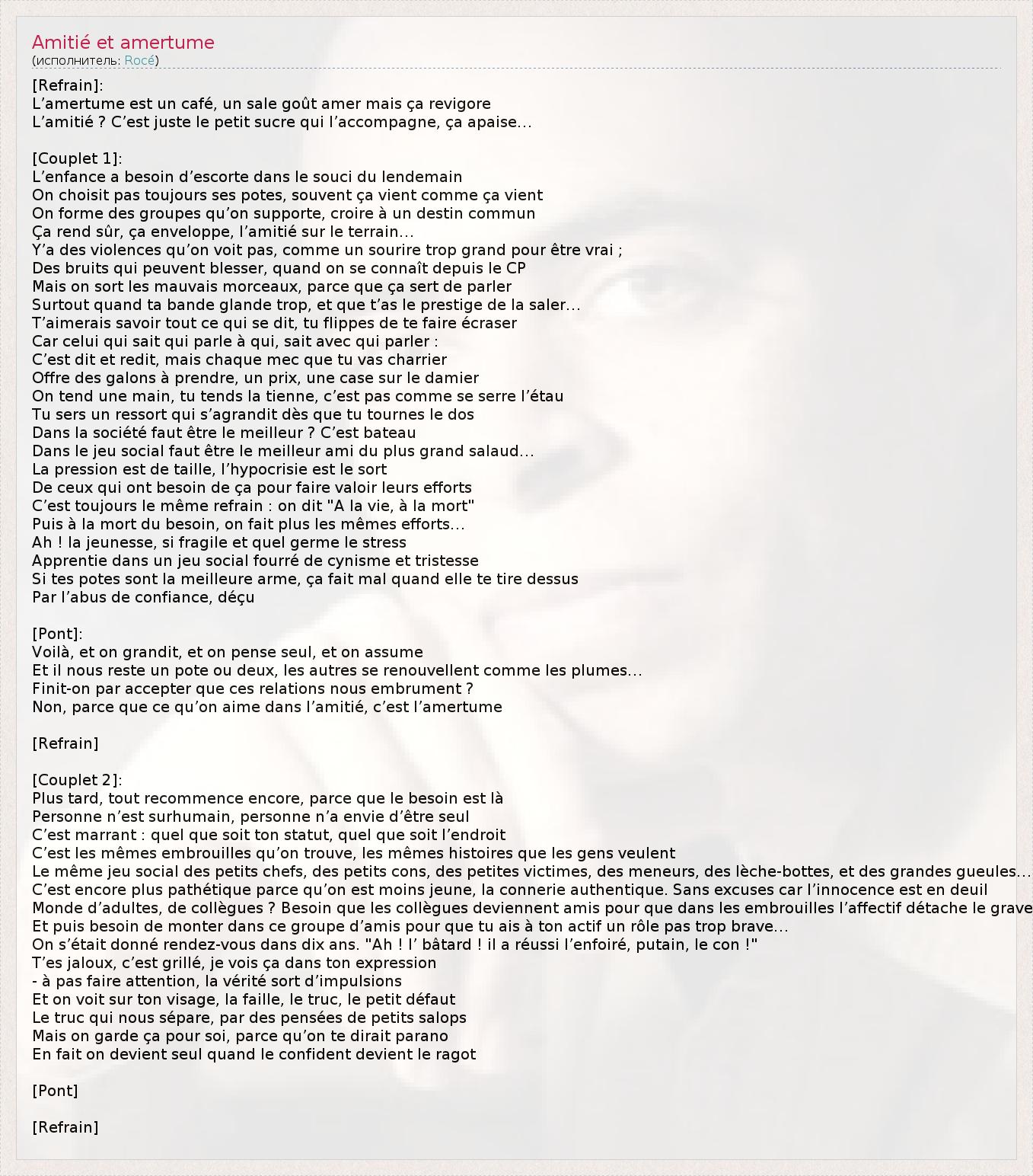 А как ты думаешь, о чем песня "Amitié et amertume" ?