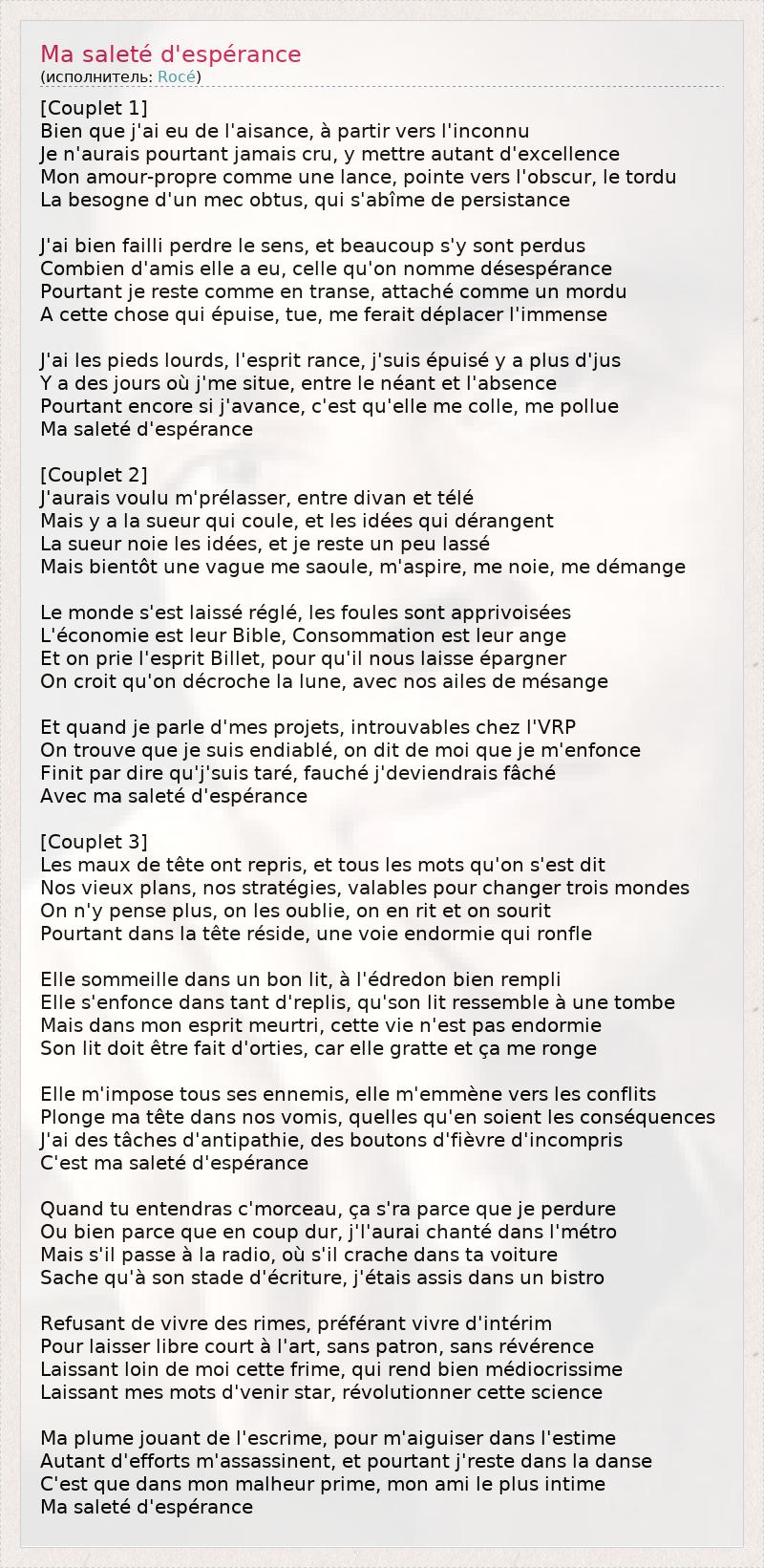 А как ты думаешь, о чем песня "Ma saleté d'espérance" ?