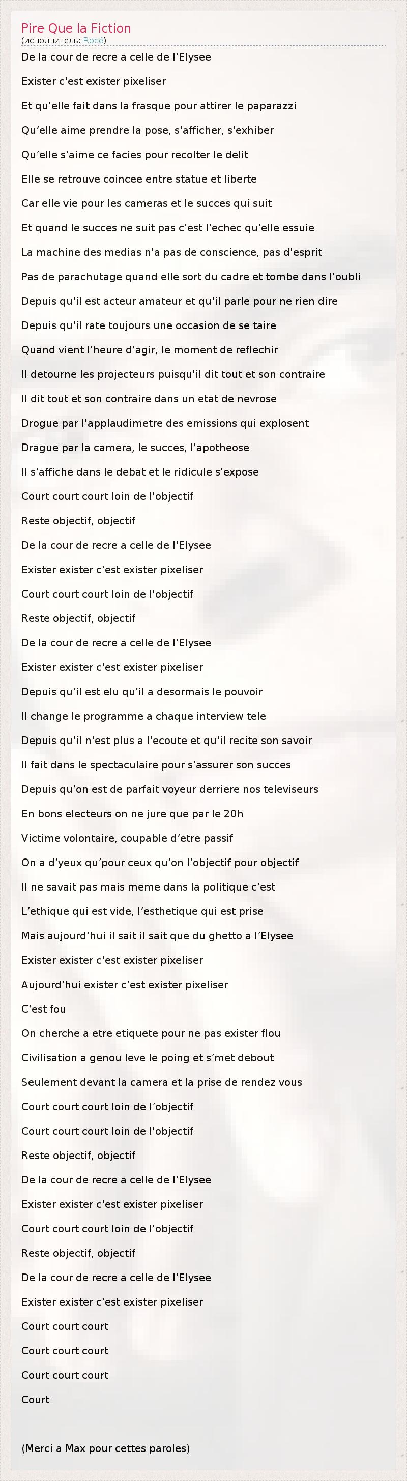 А как ты думаешь, о чем песня "Pire Que la Fiction" ?