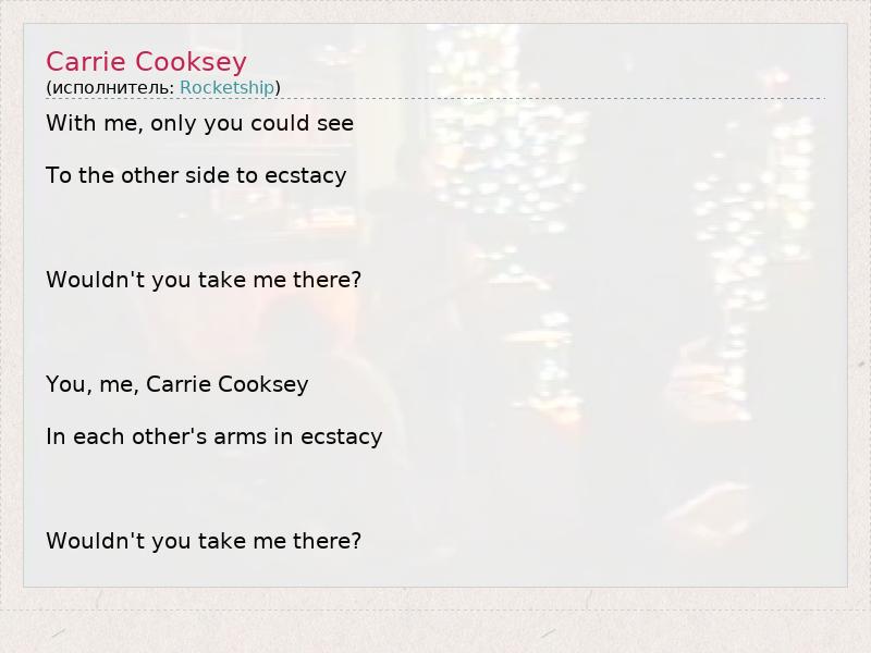 А как ты думаешь, о чем песня "Carrie Cooksey" ?