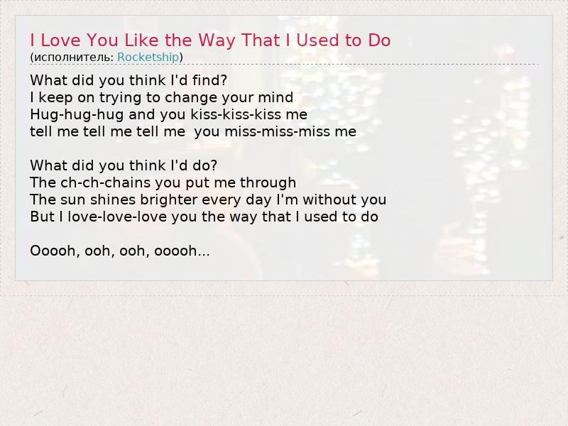 А как ты думаешь, о чем песня "I Love You Like the Way That I Used to Do" ?