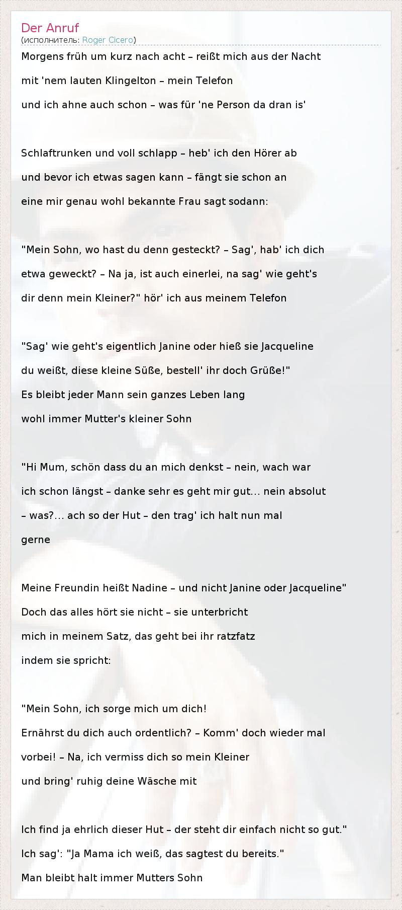 А как ты думаешь, о чем песня "Der Anruf" ?