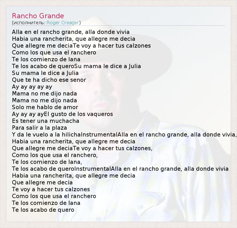 А как ты думаешь, о чем песня "Rancho Grande" ?