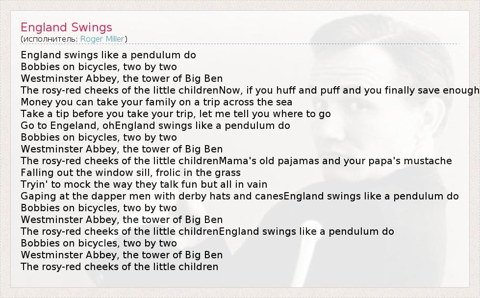 The rosy-red cheeks of the little childrenEngland swings like a pendulum do