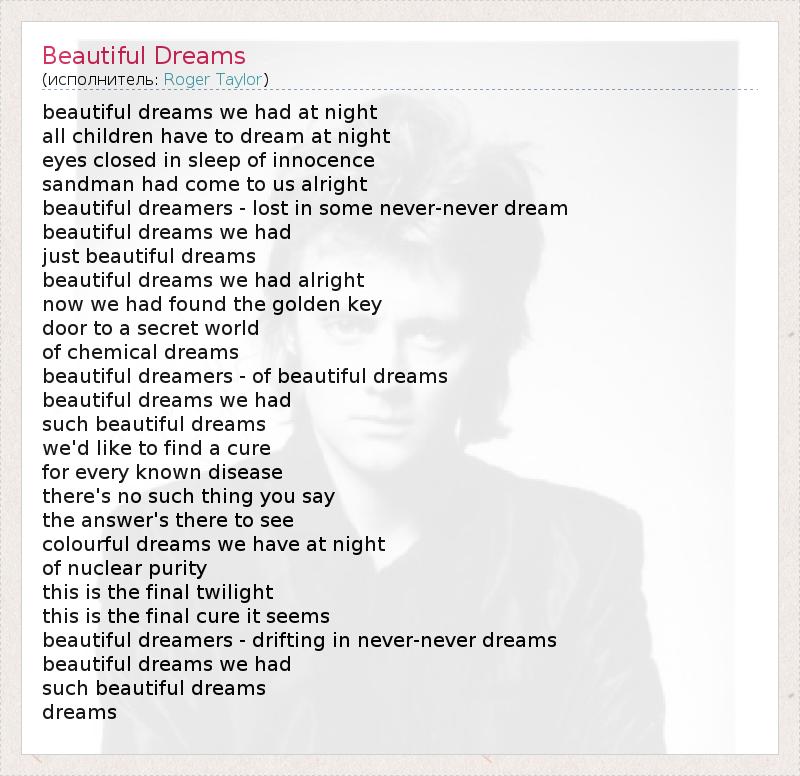 А как ты думаешь, о чем песня "Beautiful Dreams" ?