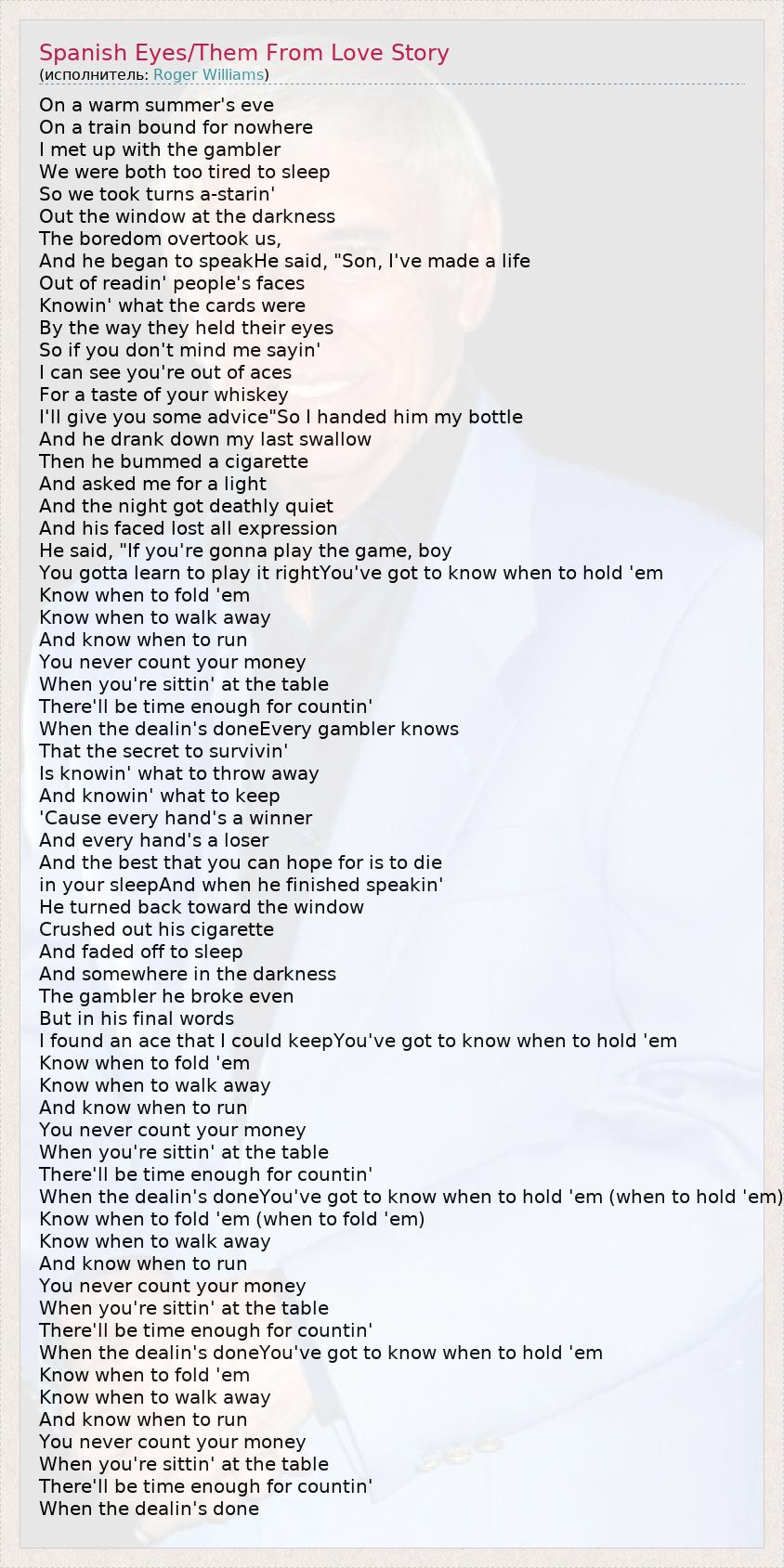 I found an ace that I could keepYou've got to know when to hold 'em