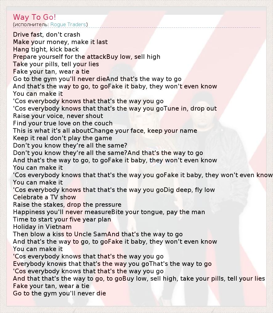 А как ты думаешь, о чем песня "Way To Go!" ?