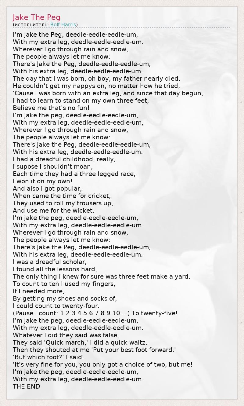 А как ты думаешь, о чем песня "Jake The Peg" ?