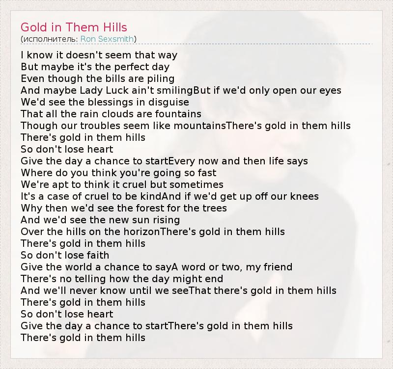 А как ты думаешь, о чем песня "Gold in Them Hills" ?
