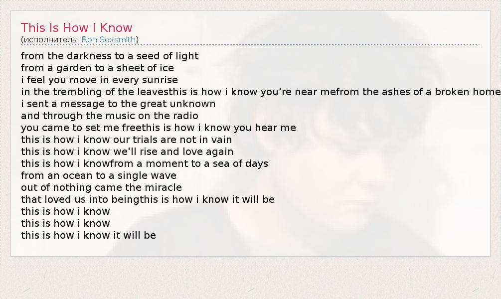 А как ты думаешь, о чем песня "This Is How I Know" ?
