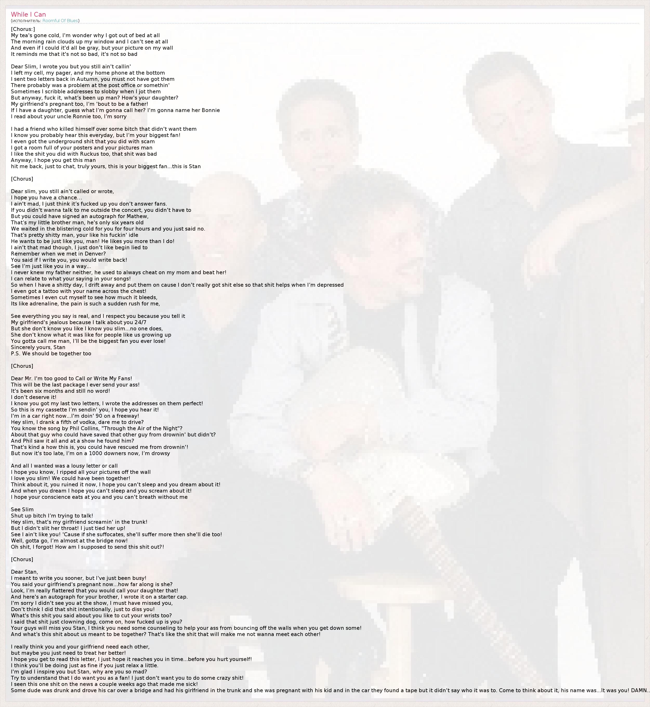 hit me back, just to chat, truly yours, this is your biggest fan...this is Stan