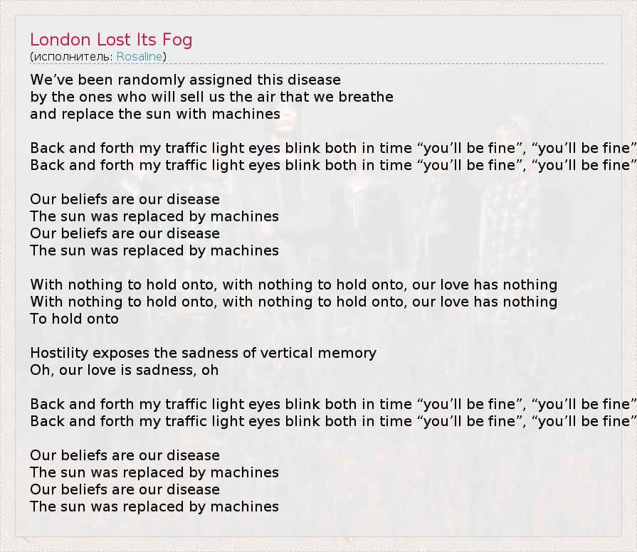 А как ты думаешь, о чем песня "London Lost Its Fog" ?