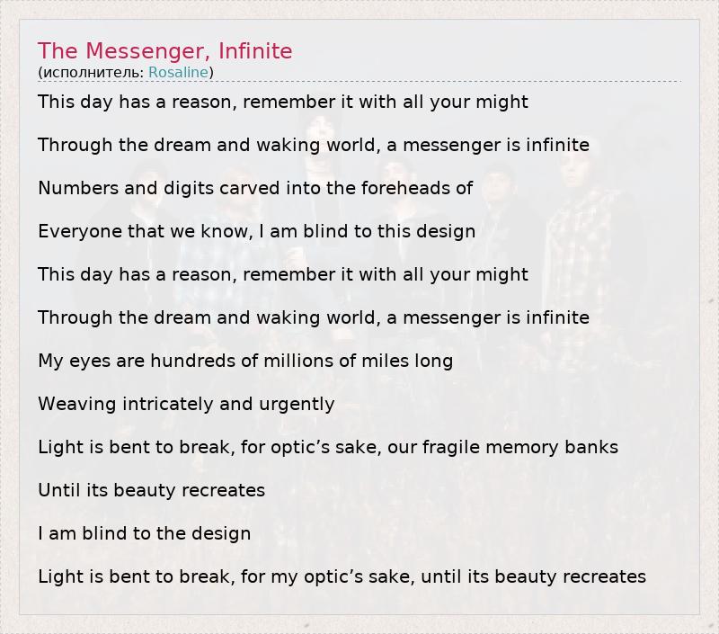 А как ты думаешь, о чем песня "The Messenger, Infinite" ?