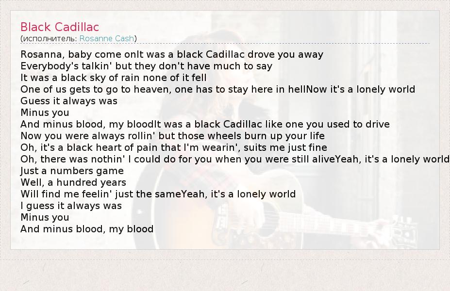 And minus blood, my bloodIt was a black Cadillac like one you used to drive