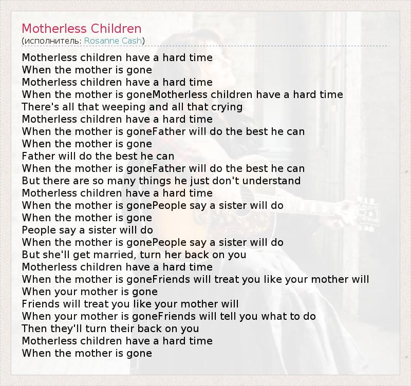 А как ты думаешь, о чем песня "Motherless Children" ?