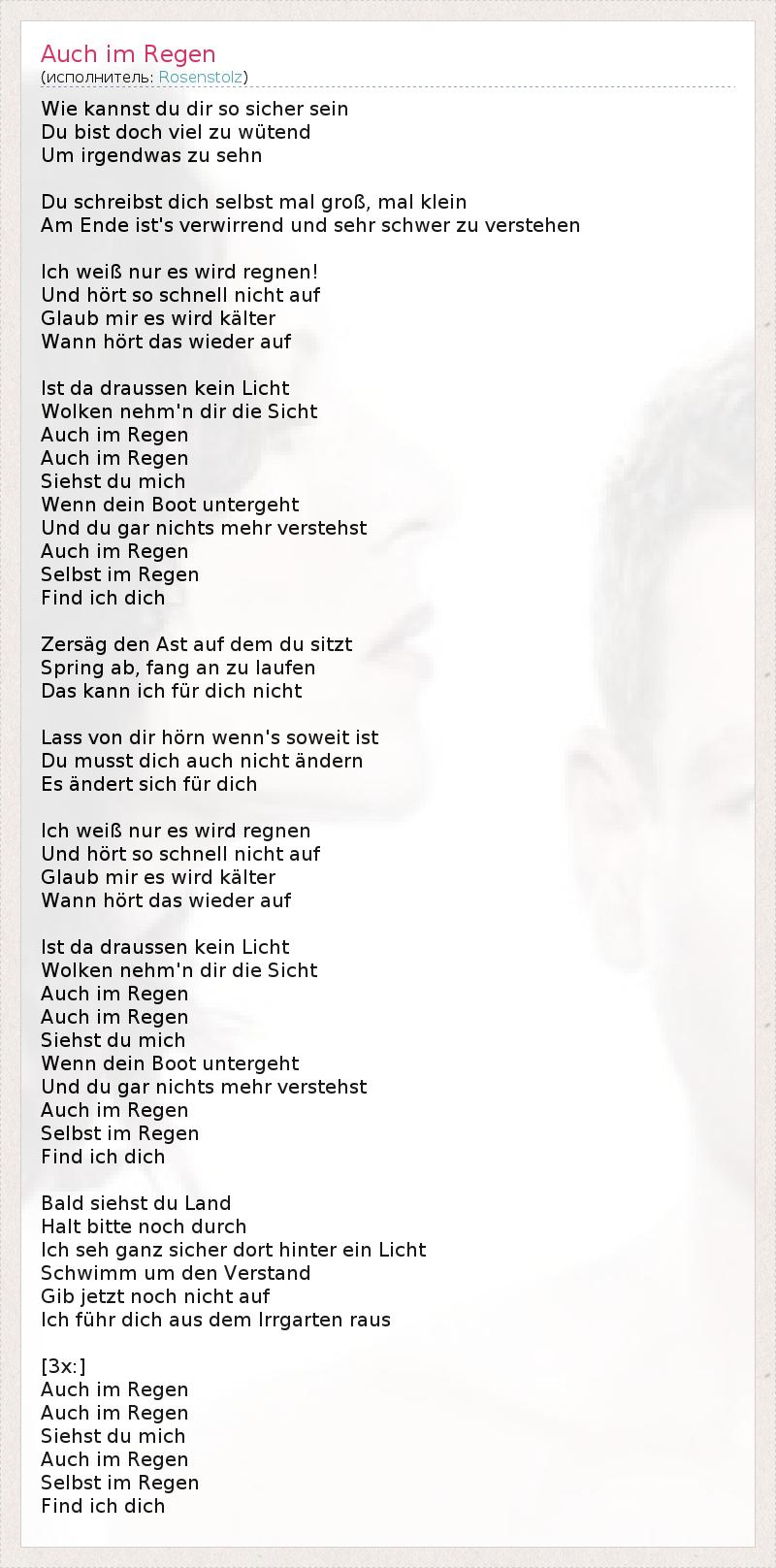 А как ты думаешь, о чем песня "Auch im Regen" ?