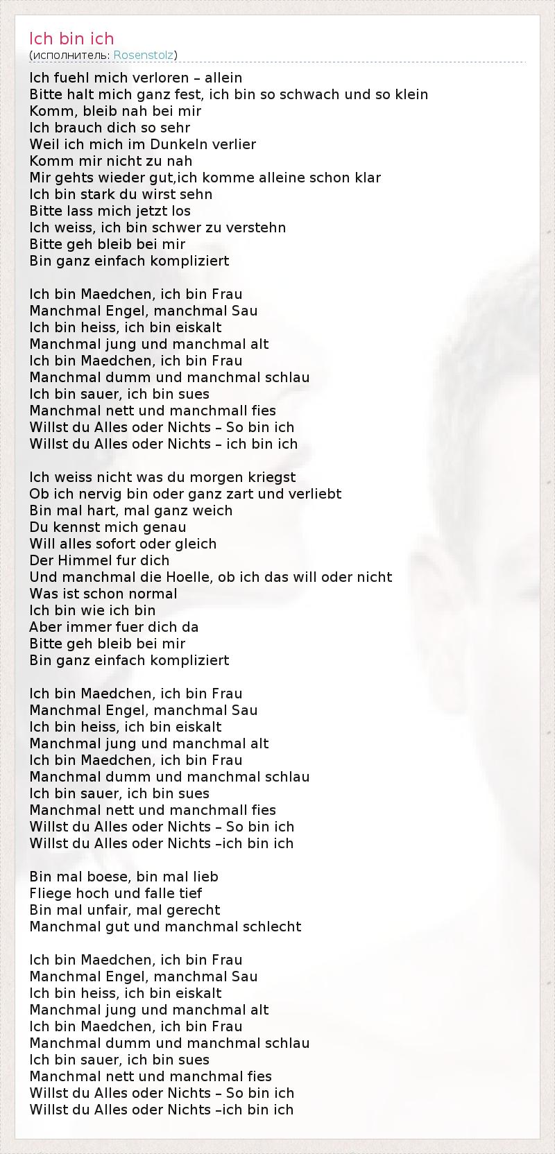 А как ты думаешь, о чем песня "Ich bin ich" ?