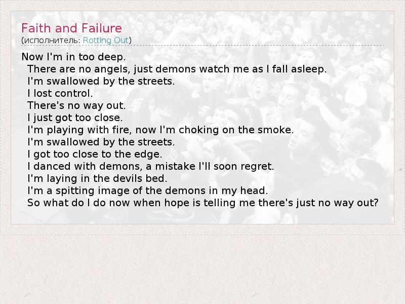 А как ты думаешь, о чем песня "Faith and Failure" ?