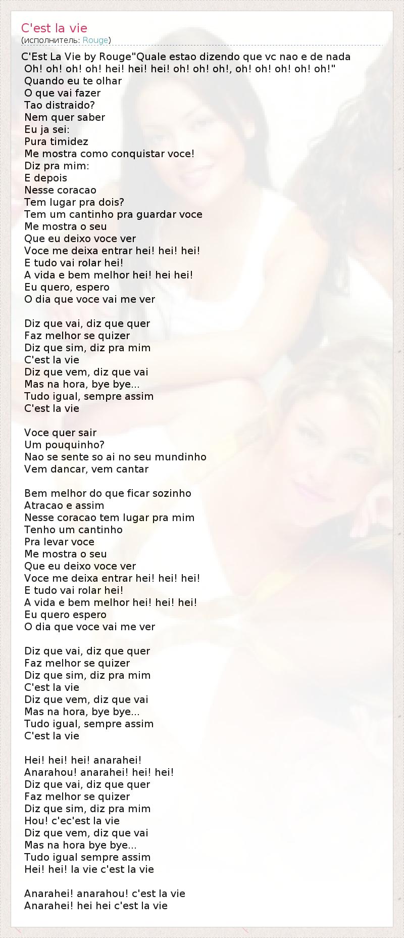 А как ты думаешь, о чем песня "C'est la vie" ?