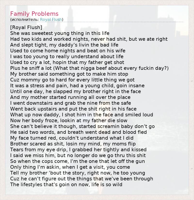А как ты думаешь, о чем песня "Family Problems" ?