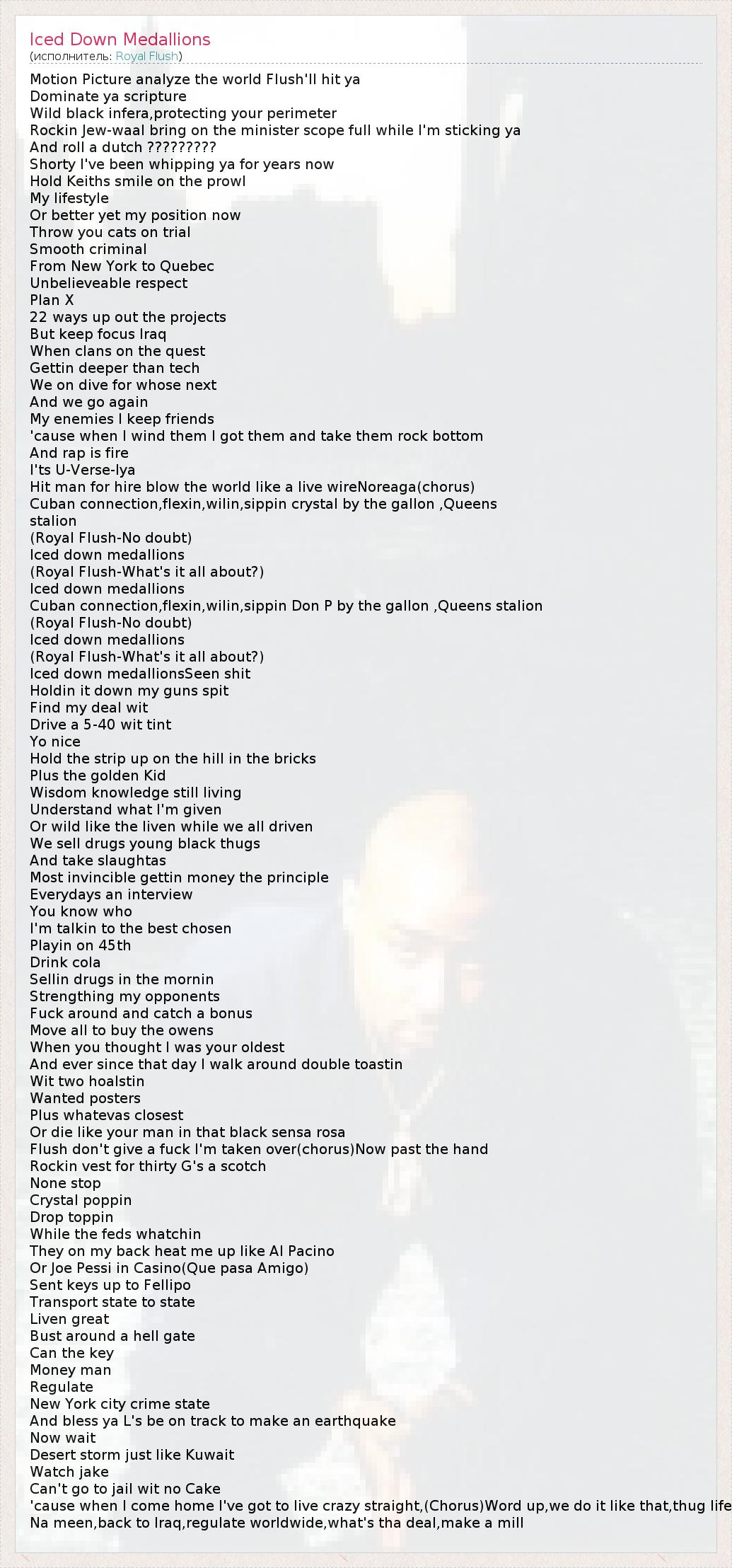А как ты думаешь, о чем песня "Iced Down Medallions" ?
