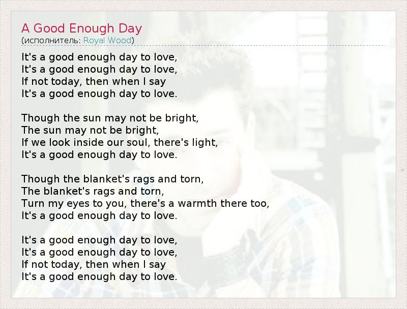 А как ты думаешь, о чем песня "A Good Enough Day" ?
