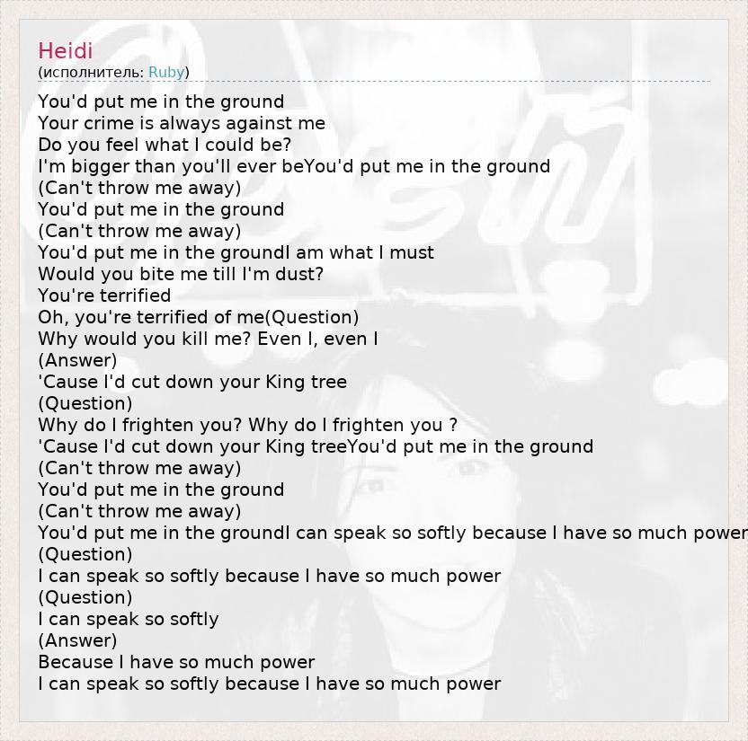 'Cause I'd cut down your King treeYou'd put me in the ground