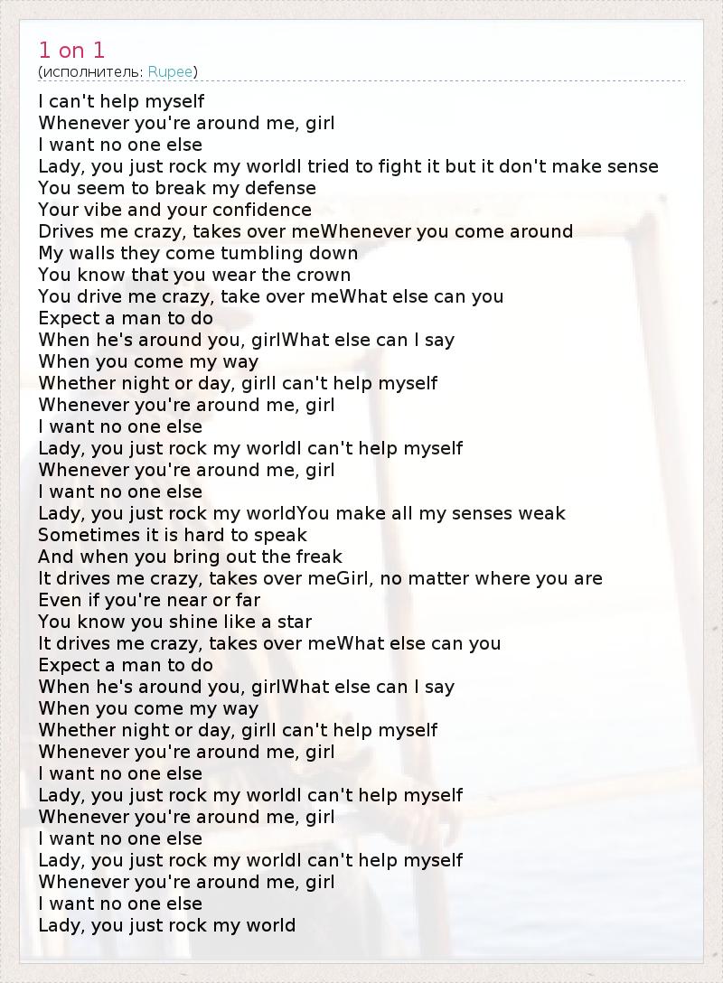Lady, you just rock my worldI can't help myself