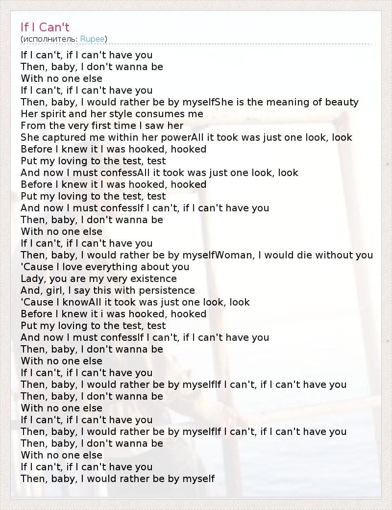 Then, baby, I would rather be by myselfIf I can't, if I can't have you