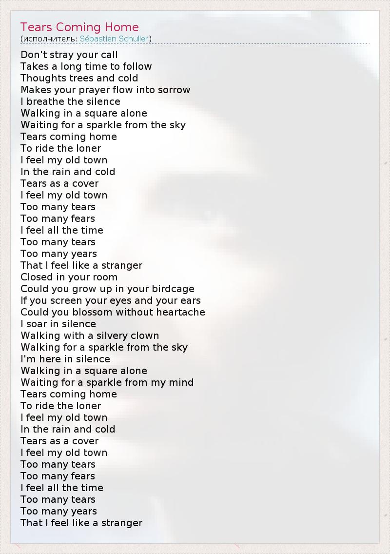 А как ты думаешь, о чем песня "Tears Coming Home" ?